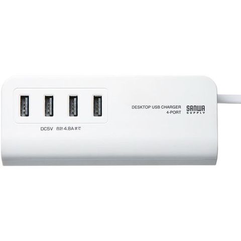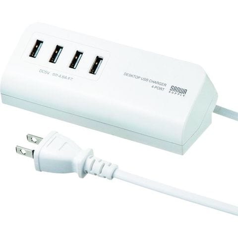・色:白・ポート数:4・幅(mm):135・奥行(mm):55.5・高さ(mm):43.5・ケーブル長(m):2・定格入力:AC100V 50/60Hz・定格出力:DC5V/4.8A(4ポート合計最大)
