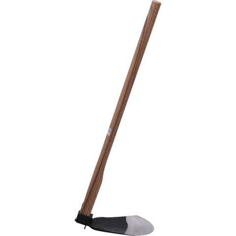 ・叩き鍛えた地金(土台)に鍛造鋼を付けた切れ味が長持ちする強靭な刃で、繁茂した熊笹の根や稲株もザクザクと切り進むことができる、「とんび」と呼ばれる伝統的形状の鍬です。