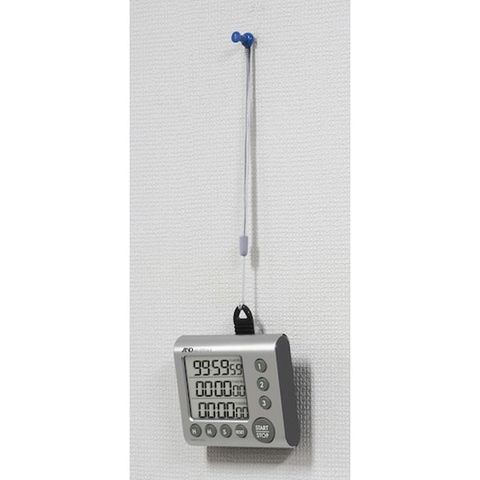 ・厨房のステンレスカラーにもなじむシルバーカラーの100時間厨房タイマーです。・最大99時間59分59秒までタイマー時間を設定可能です。・3種類のタイマー時間を設定可能です。・個別または同時にスタート/ストップをすることも可能です。・前回と同じ設定時間をかんたんに設定できるリロード機能付きです。・アラーム経過後は自動カウントアップがスタートします。・タイマーとストップウォッチを同時に使用可能です。・時計・カレンダーモードで、時刻、年月日の同時表示が可能です。・背面マグネット、クリップ、卓上スタンド、壁掛け、ストラップ装着の5通りの使い方が可能です(ストラップは付属しません)。