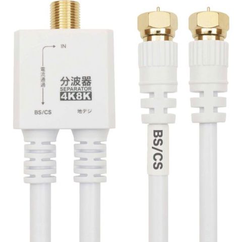 ・分波器仕様・入力周波数:47~3224(MHz)・出力周波数:U/V出力端子47~862(MHz) BS/CS出力端子950~3224(MHz)(ケーブル仕様)・ケーブル規格:S-4C-FB・コネクタ規格:F型・コネクタ形状:ネジ式(金メッキ仕様)・コネクタサイズ:W約12.5 x H約12.5 x D約32.75 mm・インピーダンス:75Ω・ケーブル直径:6mm・ケーブル長:20cm