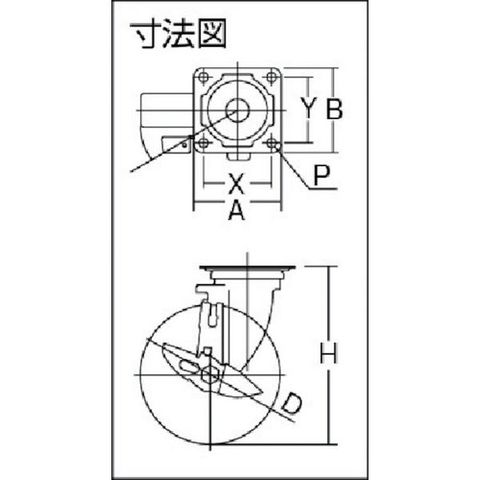 ・車輪径D(mm):125・タイプ:自在式(ストッパー付)・許容荷重(daN):160・許容荷重(kgf):164・車輪幅(mm):38・取付高H(mm):168・取付座A(mm):102・取付座B(mm):102・取付ピッチX(mm):80・取付ピッチY(mm):80・取付穴径P(mm):11・許容荷重(N):1600