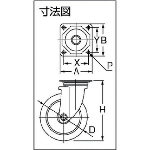 ・車輪径D(mm):150・タイプ:自在式・許容荷重(daN):180・許容荷重(kgf):184・車輪幅(mm):38・取付高H(mm):190・取付座A(mm):102・取付座B(mm):102・取付ピッチX(mm):80・取付ピッチY(mm):80・取付穴径P(mm):11.0・許容荷重(N):1800