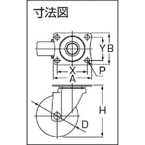 ・車輪径D(mm):100・タイプ:自在式・許容荷重(daN):80・許容荷重(kgf):82・車輪幅(mm):25・取付高H(mm):122・取付座A(mm):100・取付座B(mm):58・取付ピッチX(mm):82・取付ピッチY(mm):40・取付穴径P(mm):8.8・許容荷重(N):800