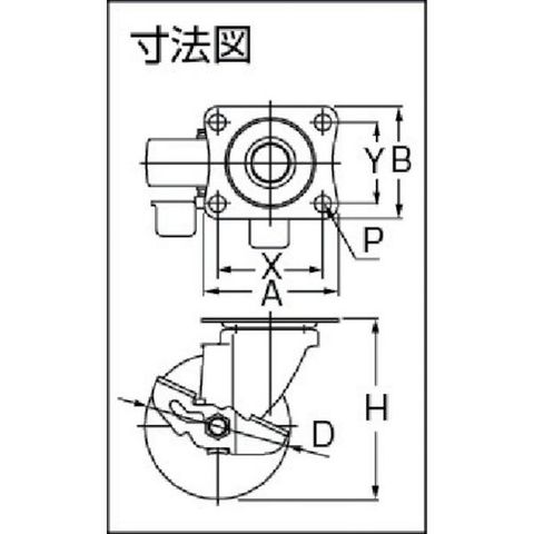 ・車輪径D(mm):65・タイプ:自在式(ストッパー付)・許容荷重(daN):80・許容荷重(kgf):82・車輪幅(mm):25・取付高H(mm):85・取付座A(mm):70・取付座B(mm):58・取付ピッチX(mm):55・取付ピッチY(mm):42・取付穴径P(mm):8.8・許容荷重(N):800