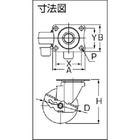 ・車輪径D(mm):75・タイプ:自在式(ストッパー付)・許容荷重(daN):80・許容荷重(kgf):82・車輪幅(mm):27・取付高H(mm):93・取付座A(mm):70・取付座B(mm):58・取付ピッチX(mm):55・取付ピッチY(mm):42・取付穴径P(mm):8.8・許容荷重(N):800