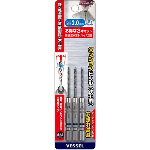 AMD3S2.0 (株)ベッセル ベッセル クッションドリル(鉄工用)3本組 Φ2.0 全長82mm
