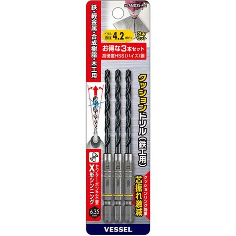 AMD3S4.2 (株)ベッセル ベッセル クッションドリル(鉄工用)3本組 Φ4.2 全長108mm