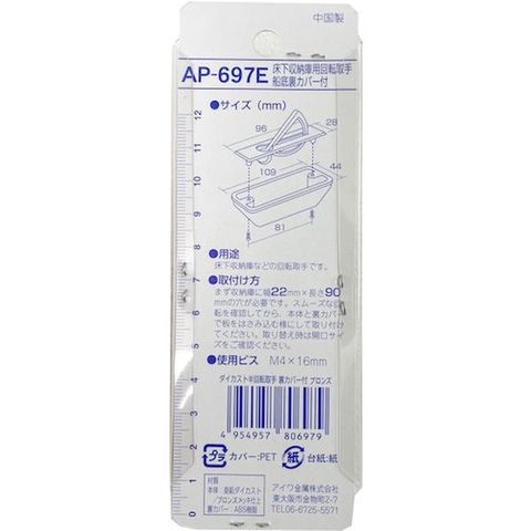 AP697E アイワ金属(株) アイワ金属 ダイカスト半回転取手裏カバー付 ブロンズ AP697E