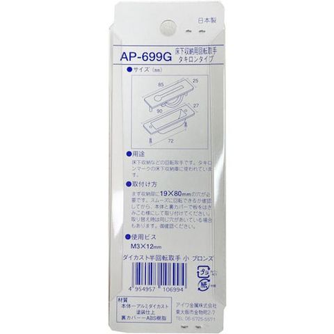 ・床下収納庫などの回転取手です。・床下収納の取手として使用できます。・収納庫を開ける時だけ90度回転し取手が取り出せるバリアフリータイプです。