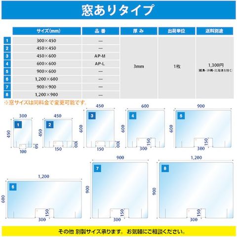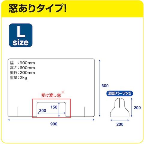 ・透明度の高い卓上アクリルパーテーションです。・受け渡しなどに便利な窓付きタイプです。・工具は使わず、差し込むだけで、簡単に組立てできます。