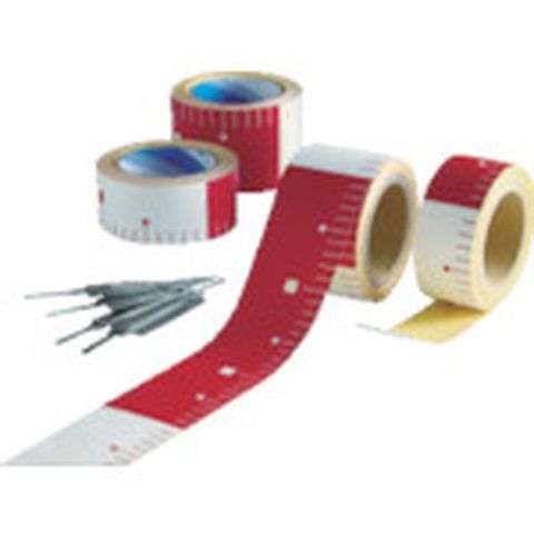 ・幅(mm):50・厚さ(mm):0.18・テープ長さ(m):25・テープ幅(mm):50・摘要:赤白30cm間隔・適用:赤白30cm間隔・ピッチ(cm):赤白30