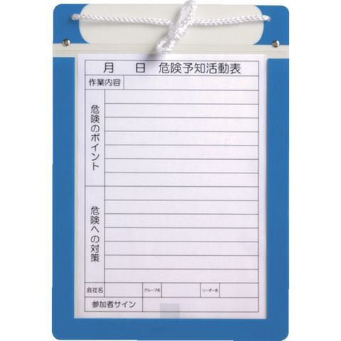 ・表示内容:危険予知活動表・取付仕様:吊下げひも付・縦(mm):375・横(mm):265・タイプ:A4縦用