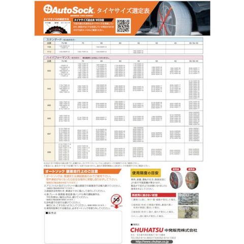 ・オートソックは緊急用の雪道滑り止め商品です。・雪道ではタイヤチェーンと同等の性能を発揮しますが、耐久性等の特性がタイヤチェーンとは異なります。・購入前に必ず適合を確認ください。
