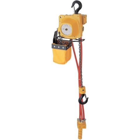 ・高速運転から低速運転まで簡単に操作ができます。・自在のスピードコントロールです。・小型・軽量、エアモーターで安全運転です。・強力ロードチェーン採用により高頻度にも対応します。・上、下限リミットスイッチ付で安全です。・化学工場や爆発の危険性がある場所でも使用できます。