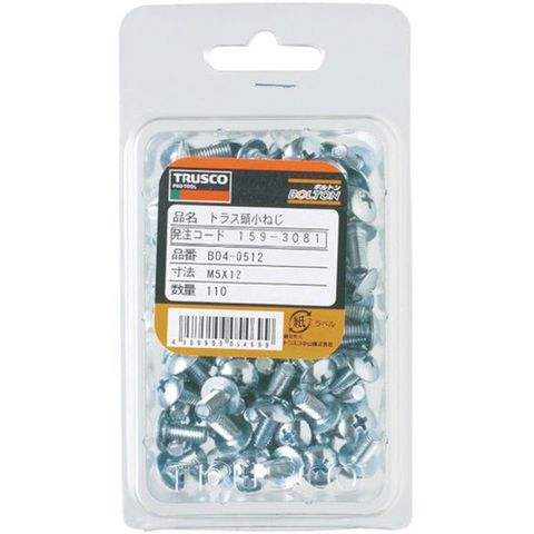 B040412 トラスコ中山(株) TRUSCO トラス頭小ねじ ユニクロ 全ネジ M4×12 180本入