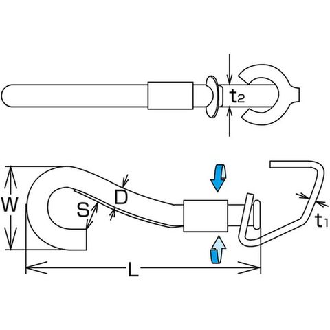 ・使用荷重(kN):0.05・D(mm):4・L(mm):54・S(mm):5・W(mm):16・t1(mm):1.4・t2(mm):4.5