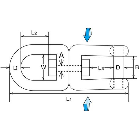 ・回転するのでねじれを取り除きます。・片方のアイは沈みシャックル形式です。・ピンを開閉することで簡単にチェーンなどが取付けできます。