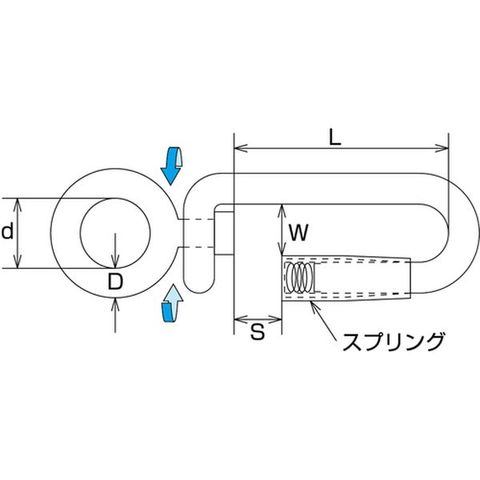 ・使用荷重(kN):0.49・D(mm):6・L(mm):44・S(mm):10・W(mm):14・d(mm):15