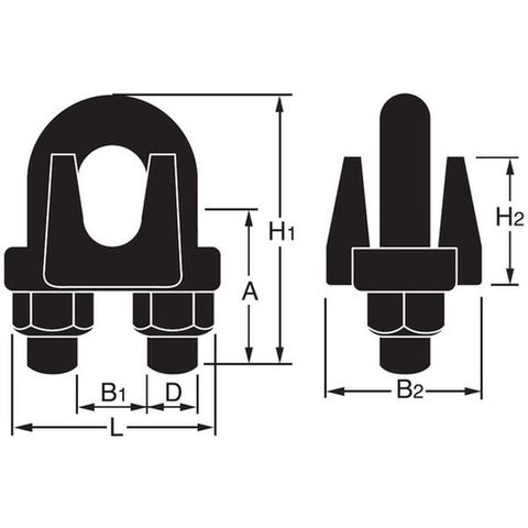 ・適合ロープ径(mm):2・A(mm):10・D(mm):M3・L(mm):13・B1(mm):4・B2(mm):14・H1(mm):18・H2(mm):11