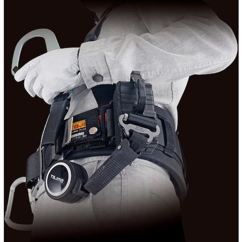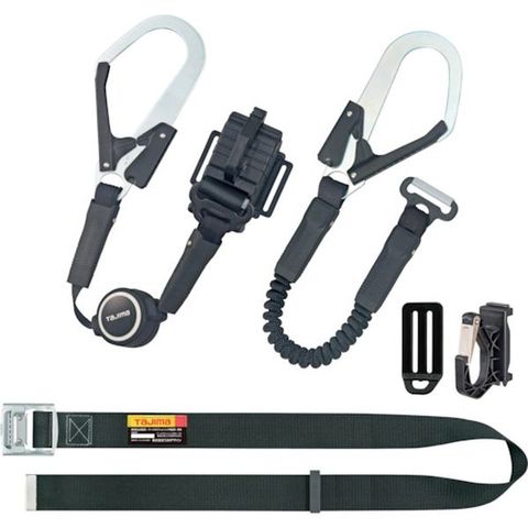 ・フック掛け替え時の無胴綱状態を防止する補助ロープ付です。・作業の邪魔にならない両側巻取式を採用した超小型巻取式(ロック機能なし)です。・装着スペース10cmの省スペース縦型ショックアブソーバを採用しています。・フックは耐久性の高いスチールフック(L1フック)です。・胴ベルトは革手袋でも操作が簡単なスチールワンフィンガーバックルです。
