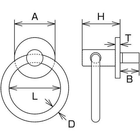 ・使用荷重(kN):0.78・ねじ径:M8・A(mm):30・B(mm):14・T(mm):3・H(mm):28・L(mm):38・D(mm):6