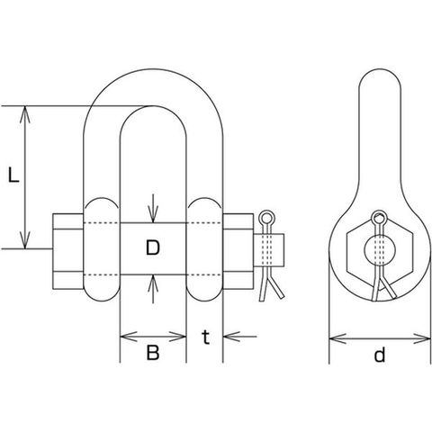・枠の太さよりピンの太さの方が太いシャックルです。・ワリピン止めなので、振動でピンが緩む危険がないタイプです。