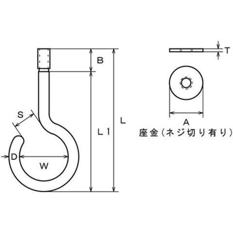 B2724 (株)水本機械製作所 水本 ステンレス 吊りフック(ブネジ)(カットアンカー付) 線径7mm(1個入)