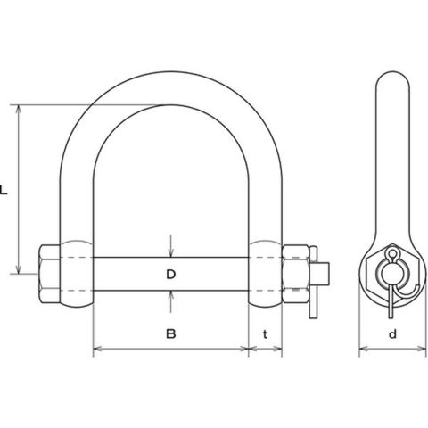 ・使用荷重(kN):2.94・ねじ径:M8・B(mm):36・D(mm):8・L(mm):50・d(mm):20・t(mm):9