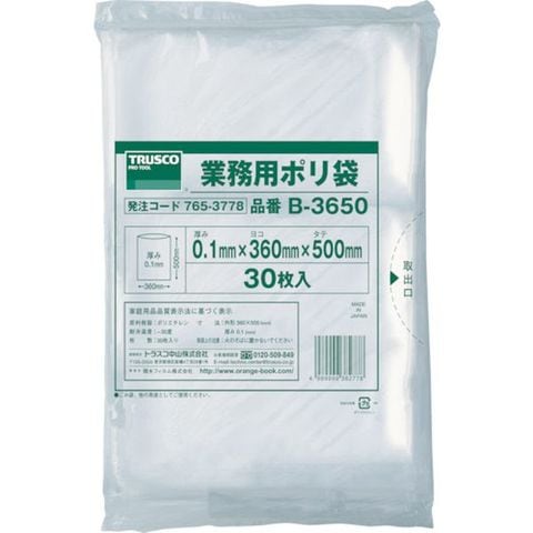 B3650 トラスコ中山(株) TRUSCO 厚手ポリ袋 縦500X横360Xt0.1 透明 (30枚入)