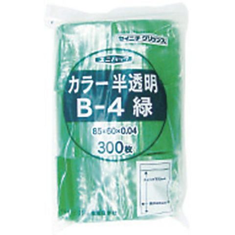 B4CG チャック付ポリ袋 ユニパック B-4 半透明緑 縦85×横60×厚さ0.04mm 300枚入
