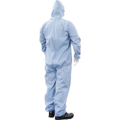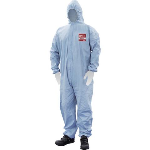 ・使い捨てタイプ・EN14116(火炎に対する防護)Index1の性能・静電気帯電防止加工・テープ付ファスナーカバー・フード、袖口、裾部分ゴム入り・JIS T 8115規格 タイプ5/6 適合品(浮遊固体粉じん・ミスト防護)