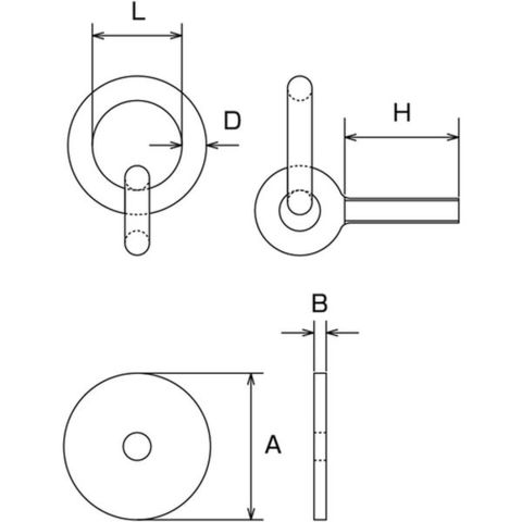 ・使用荷重(kN):1.47・ねじ径:W-3/8・A(mm):50・B(mm):4・H(mm):49・L(mm):30・D(mm):9・ドリル径(mm):18