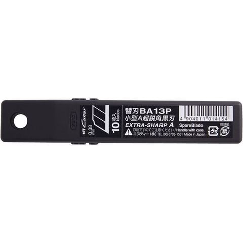 ・刃厚(mm):0.38・刃長(mm):80・適合本体:A型カッター・色:黒・パック入数(枚):10