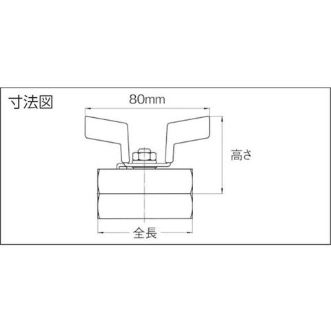 ・呼び径A:20・呼び径B:3/4・全長(mm):61・高さ(mm):50・ハンドル長D(mm):80・最高許容圧力(MPa):1.96・使用温度範囲(℃):-10~120(不凍)・適合流体:水・油・ガス等・呼び径(mm):27.2・面間(mm):61・内径(mm):12.5・接続:RC×RC
