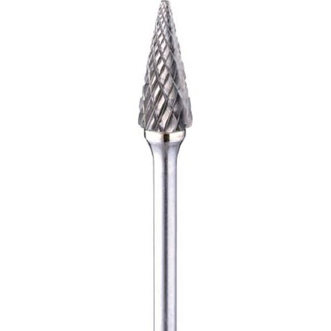 ・形状:円錐先丸(クロスカット)・刃径(mm):6.4・刃長(mm):16・軸径(mm):3.0・軸長(mm):32.5・角度(°):22・タイプ:クロスカット・最高使用回転数(rpm):30000・全長(mm):48.5