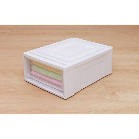 ・色:ホワイト/クリア・間口(mm):265 ・奥行(mm):370 ・高さ(mm):162 ・引出し内寸(mm)間口:212・引出し内寸(mm)奥行:325・引出し内寸(mm)高さ:115・キャスター:なし・積み重ね可能数:3段まで