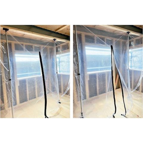 ・養生シートで現場の間仕切りや出入口の設置を自由にできる新発想どこでも扉の防塵シリーズです。・サポートリフタ防塵用シートBS-2840のドア(開閉用スライダ)として使用します。・シートに貼って設置できます。