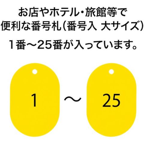 ・色:黄・内容:1~25番・縦(mm):60・横(mm):40・厚さ(mm):2.7・穴径(mm):5