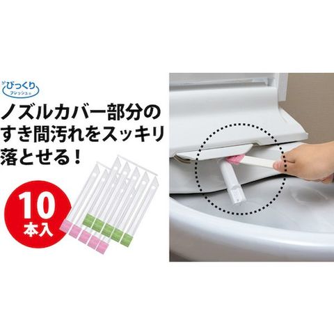 ・トイレや洗面、お風呂などの細かなすきまの汚れを落とせます。・1本ずつ取り外して使えるタイプです。・洗剤を使用する場合でもごく少量で汚れが落とせるため、経済的です。・ヘラ部分でガンコな汚れを落とせます。・びっくりフレッシュ素材にリサイクル原料(再生ポリステル樹脂)を約50%使用しています。