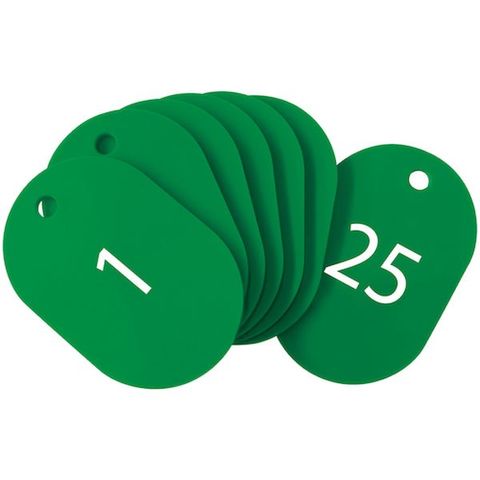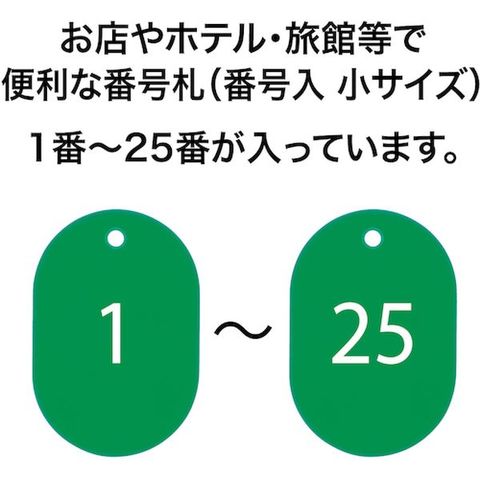 ・色:緑・内容:1~25番・縦(mm):46・横(mm):31・厚さ(mm):2.5・穴径(mm):4