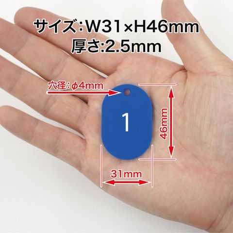 ・色:白・内容:1~25番・縦(mm):46・横(mm):31・厚さ(mm):2.5・穴径(mm):4