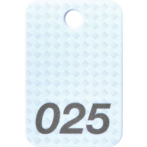 ・色:白・内容:001~025番・縦(mm):60・横(mm):40・厚さ(mm):2.7・穴径(mm):6.5・番号札サイズ(mm):60×40×2.7