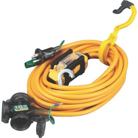 ・色:イエロー・電線種:ソフトVCT・電線仕様長さ(m):10・電線仕様太さ([[MM2]]):2.0・電線仕様芯数(C):3・コンセント仕様定格:2P・15A・125V アース付・コンセント仕様形状:[[三相1]]・コンセント仕様個数:3・接地アース:○・パイロットランプ:○・とび出しプラグ:○・漏電遮断器仕様:漏電地絡保護専用