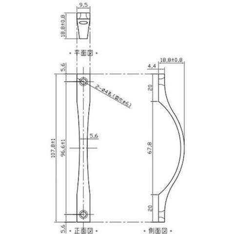 ・全長(mm):107.8・色:シルバー・幅(mm):9.5・2穴ピッチ(mm):96.6・規格(mm):108・ビスピッチ(mm):96.5・適合扉厚(mm):20以上