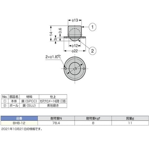 ・図中における寸法は参考寸法です。・また、ボール部が鋼球のため、床との接地面にキズをつける恐れがあります。・ご使用の際は必ず現品にてご確認ください。