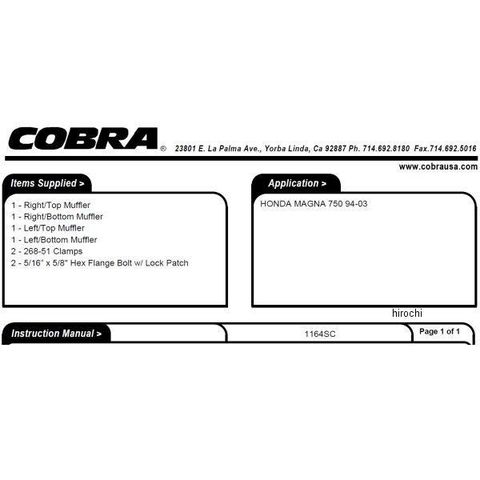 コブラ COBRA スリップオンマフラー スラッシュカット 94年-03年 マグナ VF750C