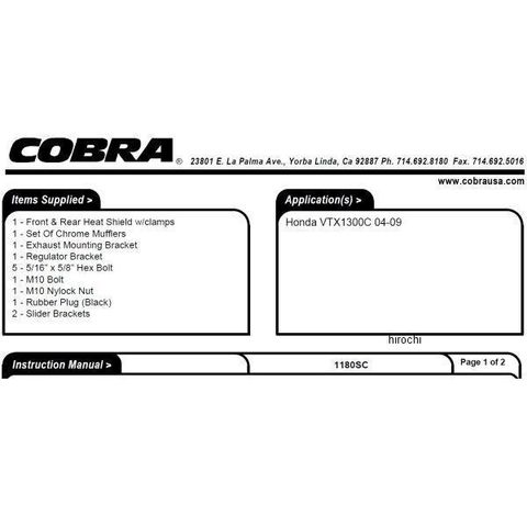 コブラ COBRA スリップオンマフラー スラッシュカット 04年-09年 VTX1300C