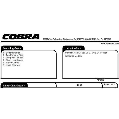 コブラ COBRA フルエキゾースト スラッシュカット ドラッグパイプ 98年-05年 ドラッグスター XVS650