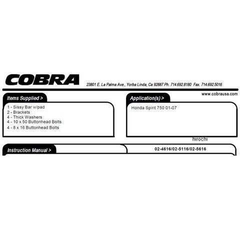 コブラ COBRA シーシーバー 01年-07年 シャドウ VT750DC ミニ