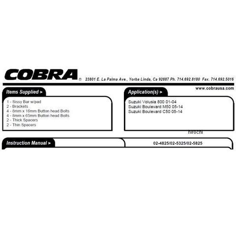 コブラ COBRA シーシーバー 05年-14年 ブルバード イントルーダー VL800 ミニ